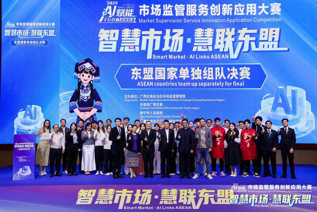 10月30日,由广西壮族自治区市场监督管理局、共青团广西区委等主办、中国-东盟产业合作发展促进会支持举办的“AI赋能千行百业超级联赛——市场监管服务创新应用大赛”在南宁圆满收官。本次大赛作为促进中国与东盟数字技术交流与合作的重要平台,汇聚了来自中国及东盟各国的顶尖科技人才与团队,上演了一场精彩纷呈的“智慧对决”。