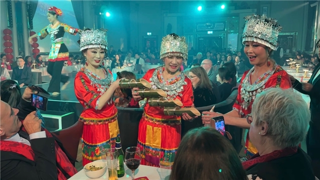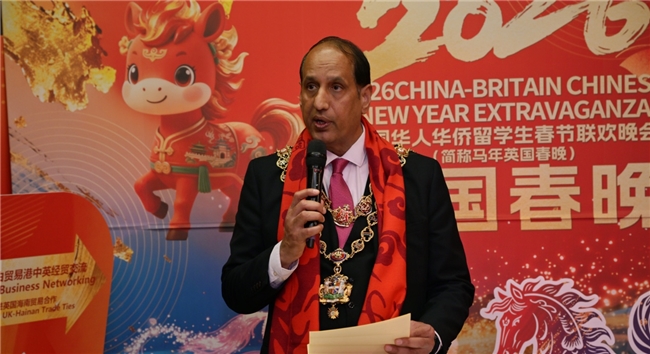 在春晚演出开始前,一场“海南自贸港中英经贸交流酒会”先行举行,为文化活动注入了务实合作的维度。伯明翰市市长在致辞中表达了加强与海南自贸港合作的意愿,现场还播放了海南省贸促会会长宁虹雯的视频致辞。