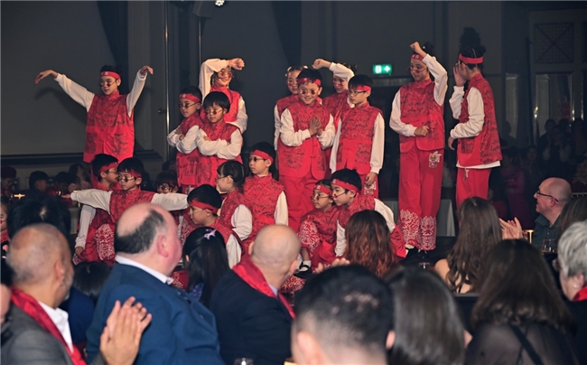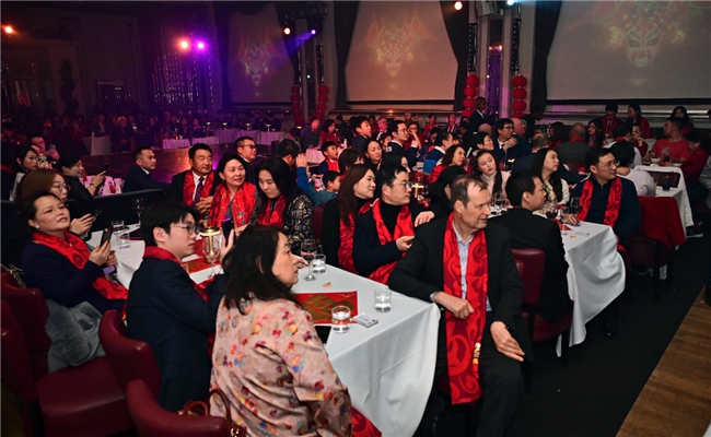 当晚,中国驻英国使馆刘红梅参赞、伯明翰市市长、议员扎法尔·伊克巴尔等多位重要嘉宾出席。中国驻英国使馆刘红梅参赞在晚会最后上台致以新春祝词,对晚会的圆满成功表示热烈祝贺,感谢主办方以及所有赞助商、演职人员和志愿者,并代表使馆向大家致以新春祝福。