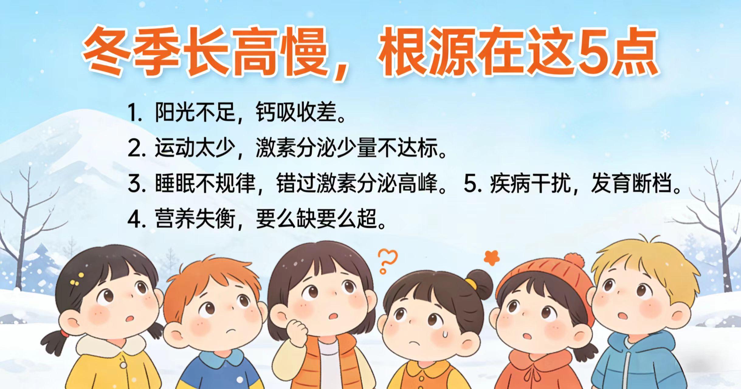4. 营养失衡,要么缺要么超:冬季进补易过度喂养致肥胖,或没抓准关键营养(如蛋白质、钙),营养不良与肥胖都会阻碍身高。